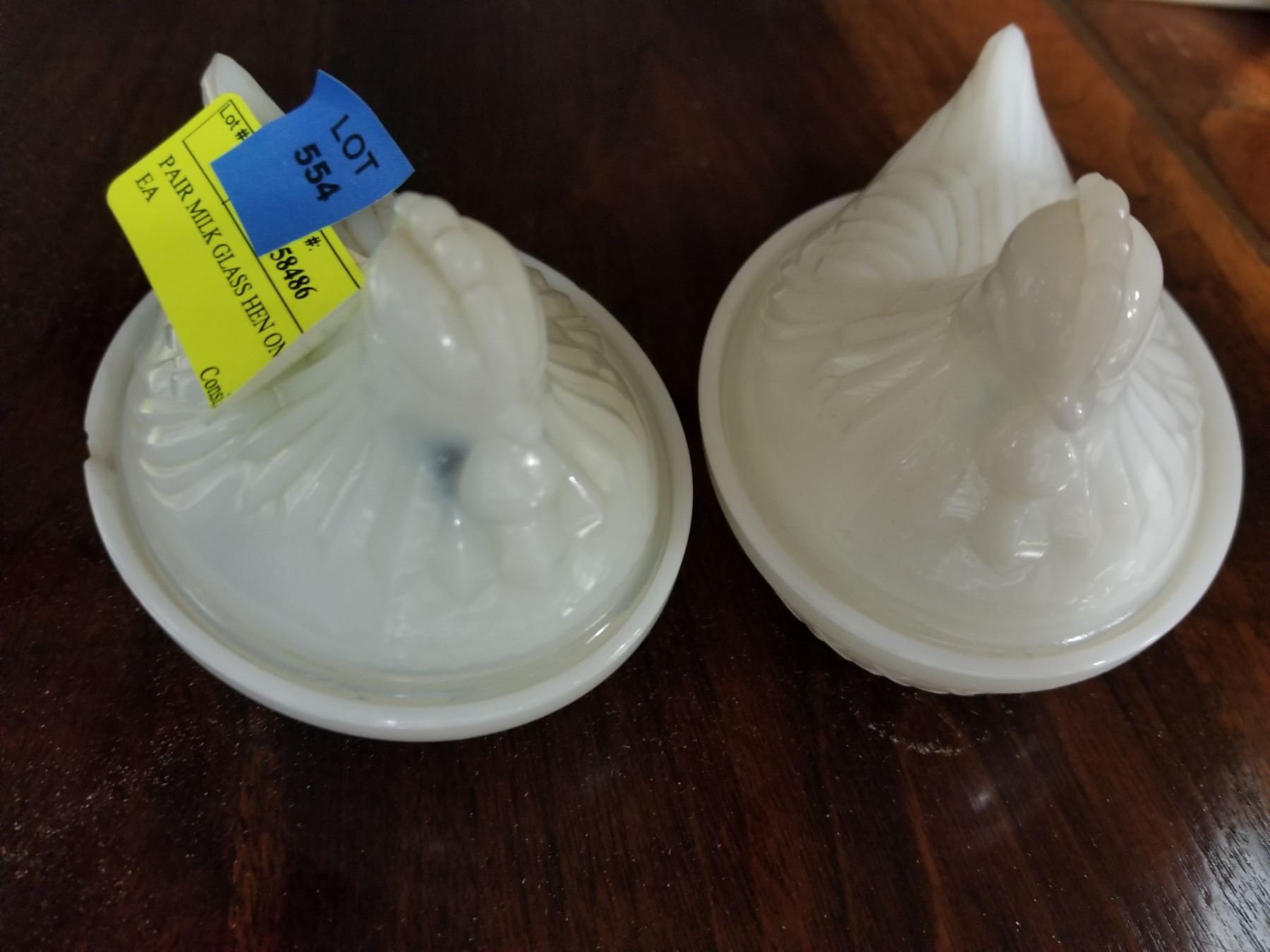 PAIR MILK GLASS HEN ON NEST 5" EA