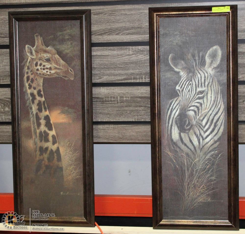PAIR OF 2 GIRAFFE FRAMED PICTURES 15"X38" EACH