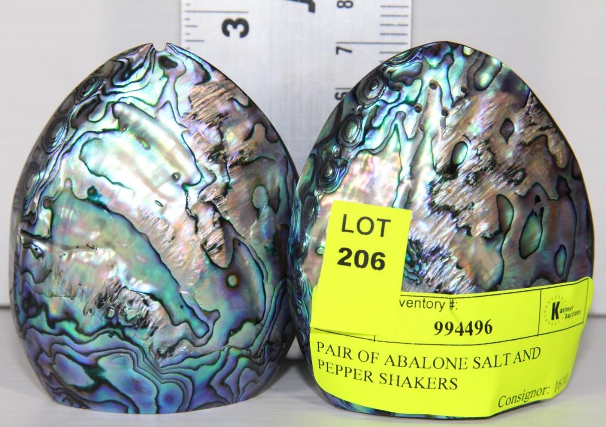 PAIR OF ABALONE SALT AND PEPPER SHAKERS