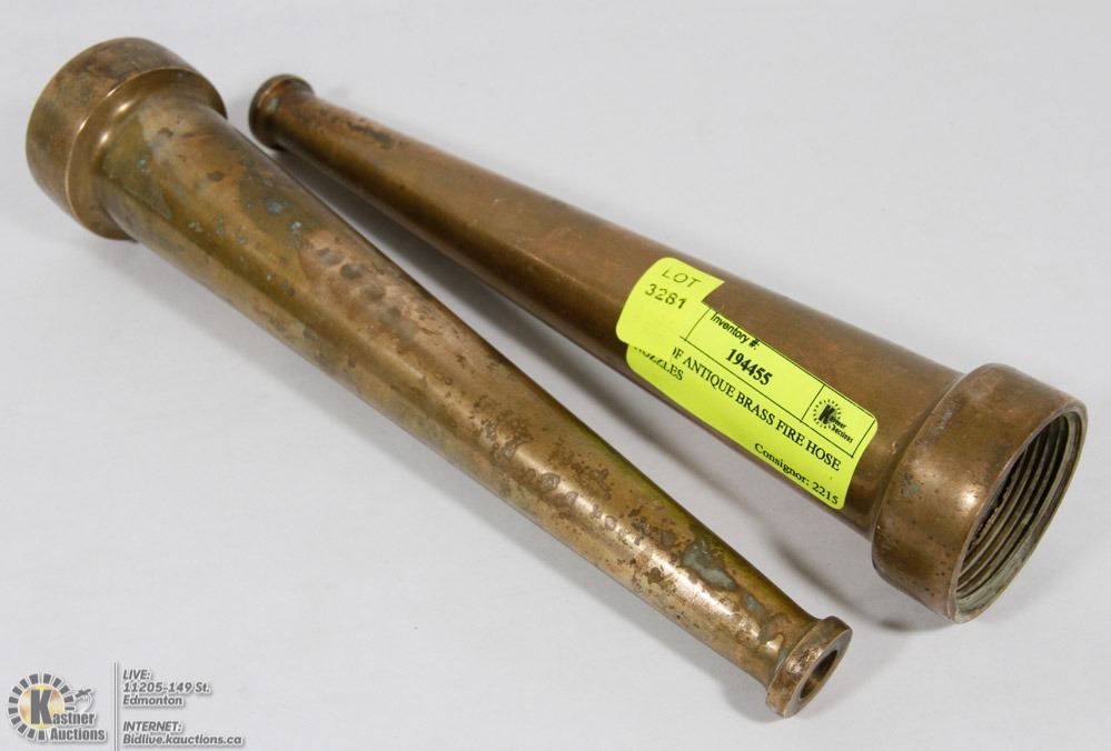 PAIR OF ANTIQUE BRASS FIRE HOSE NOZZLES