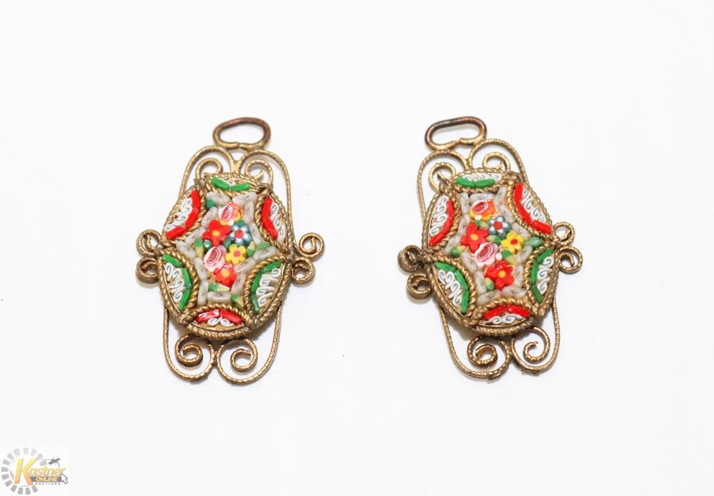 PAIR OF ANTIQUE ITALIAN MICRO MOSAIC PENDANTS
