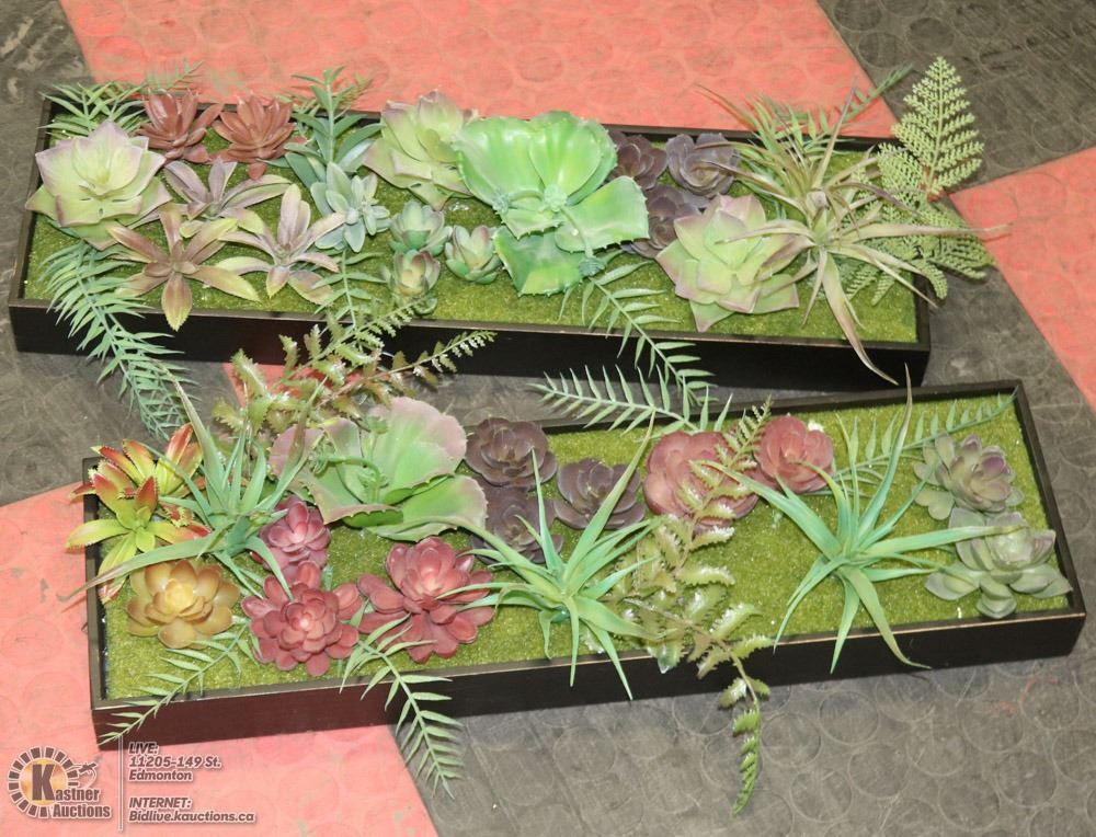 PAIR OF ARTIFICIAL CACTUS TRAY DISPLAYS, 22X17