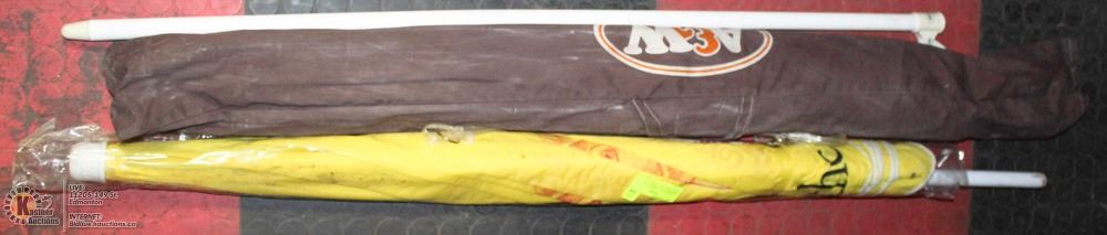 PAIR OF BEACH UMBRELLAS - 1 COCA COLA AND 1 A&W