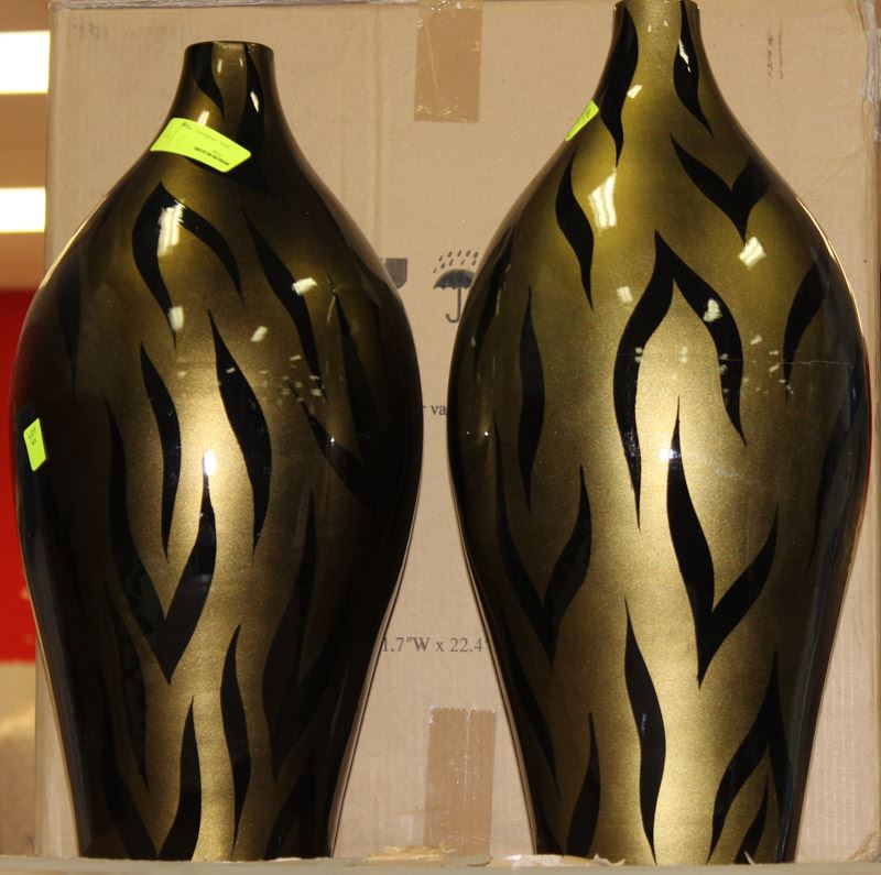 PAIR OF BLACK & GOLD TONE ACCENT VASES