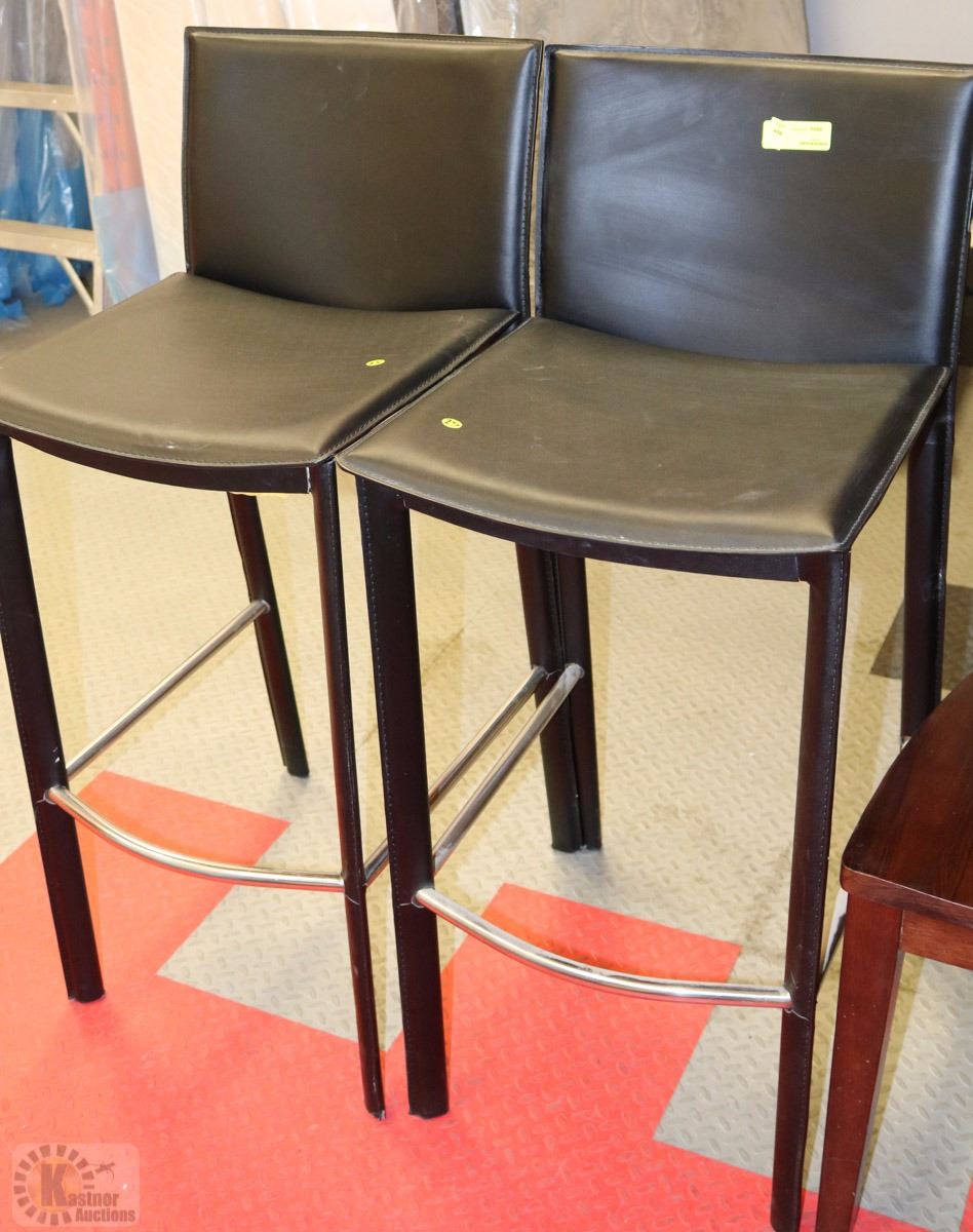 PAIR OF BLACK LEATHERETTE BAR STOOLS