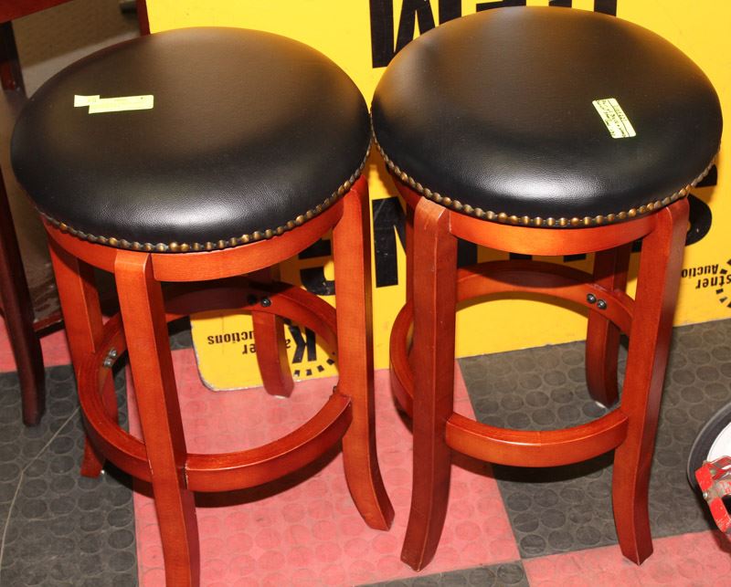 PAIR OF BLACK & WOOD SWIVEL BAR STOOLS-NEW