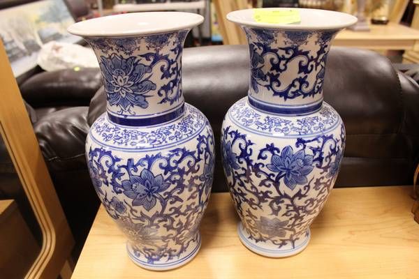 PAIR OF BLUE AND WHITE VASES 16'