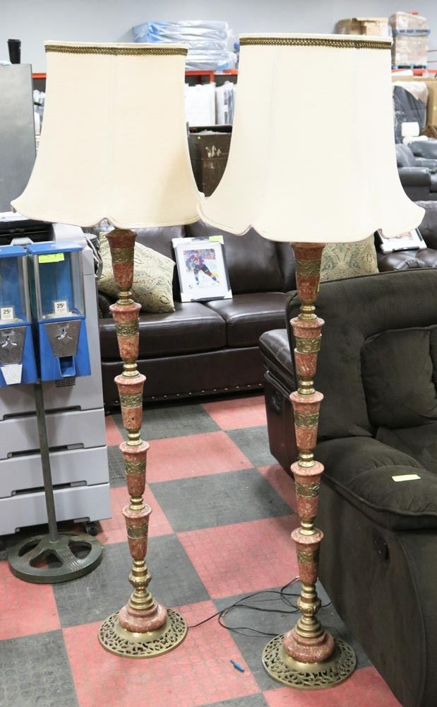 PAIR OF BRASS AND MARBLE FLOOR LAMPS