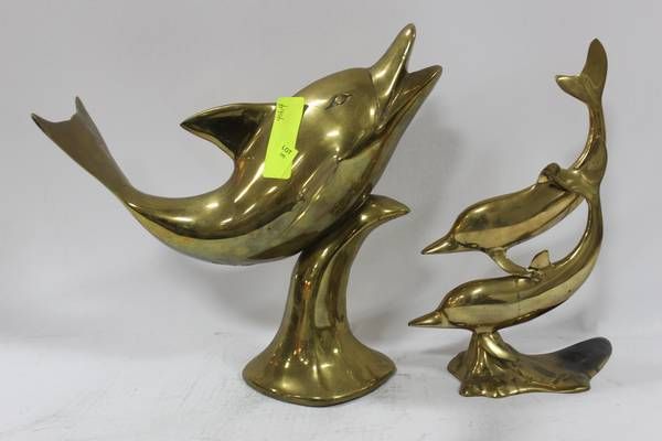 PAIR OF BRASS DOLPHIN ORNAMENTS