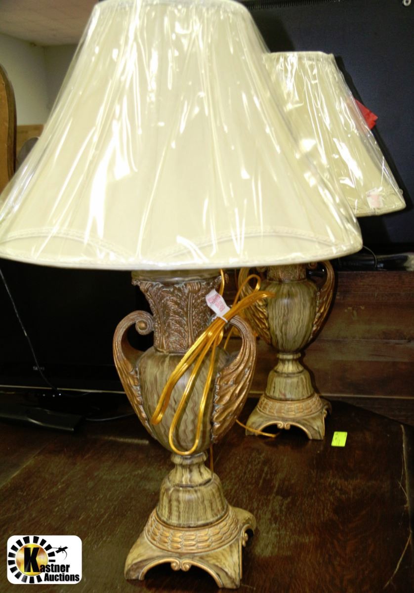 PAIR OF BRONZE COLOR TABLE LAMPS WITH SHADES