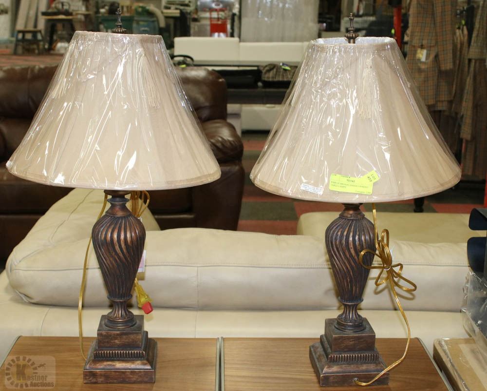 PAIR OF BRONZE FINISH LOOKING TABLE LAMPS