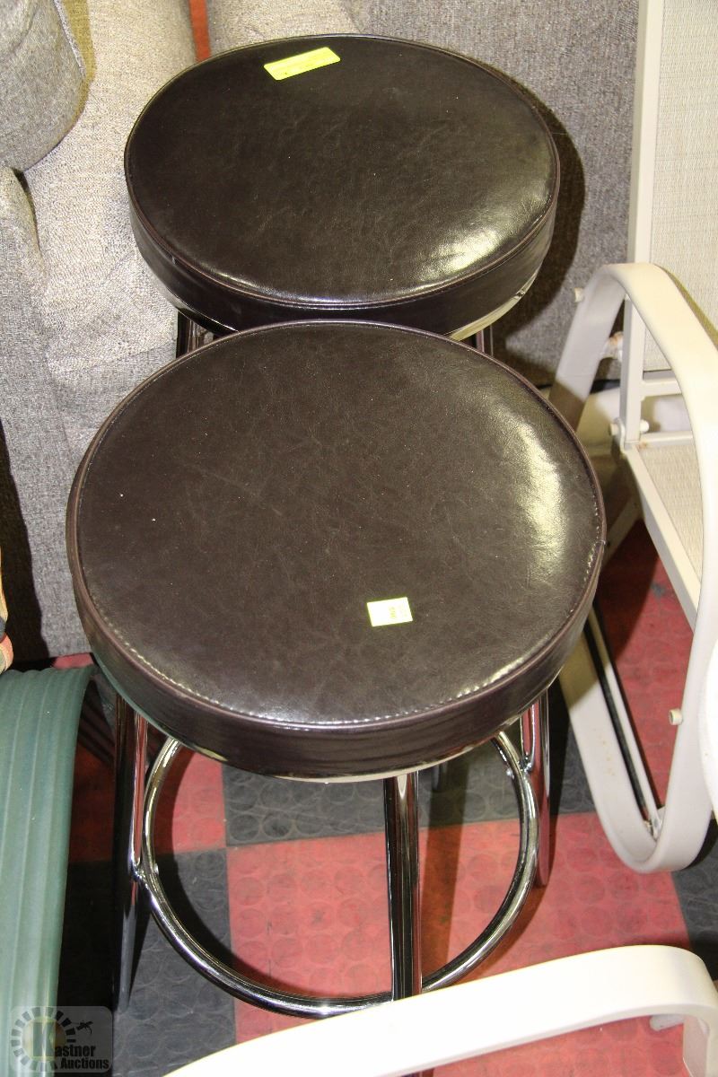 PAIR OF BROWN & CHROME SWIVEL BAR STOOLS