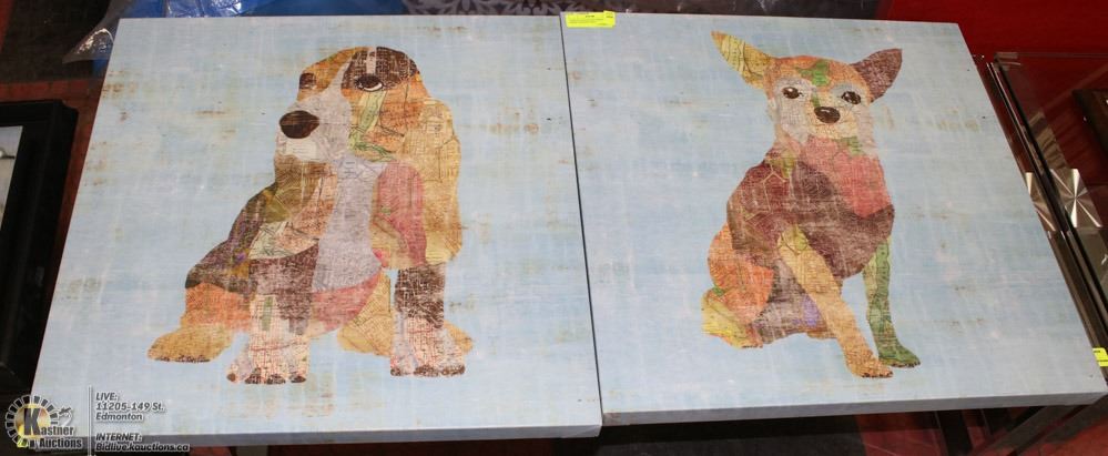 PAIR OF CANVAS DOG PRINTS - MADE OF MAPS 24X24