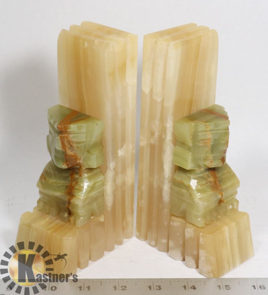 PAIR OF CARVED ALABASTER BOOKENDS