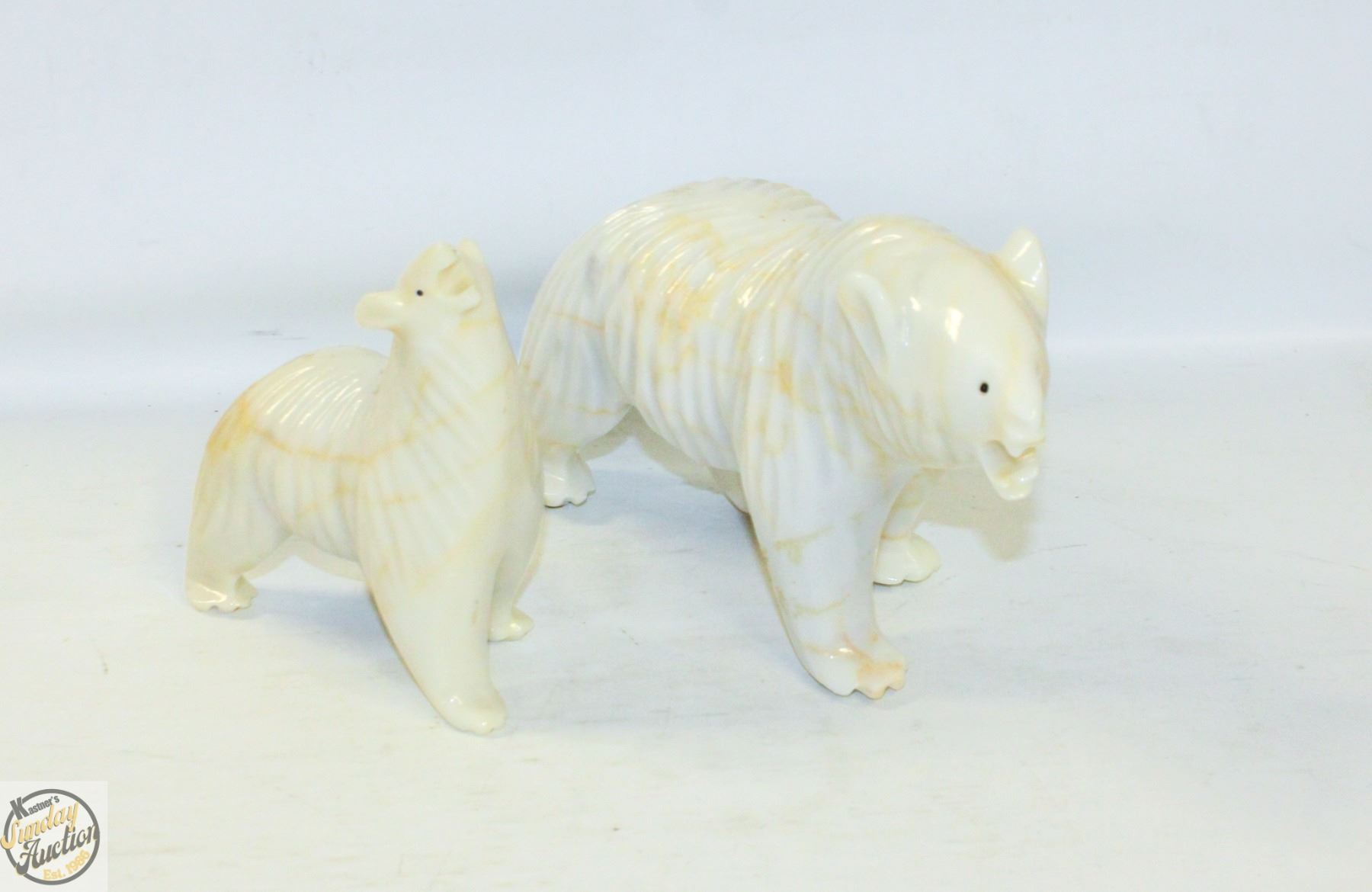 PAIR OF CARVED ALABASTER POLAR BEAR FIGURINES
