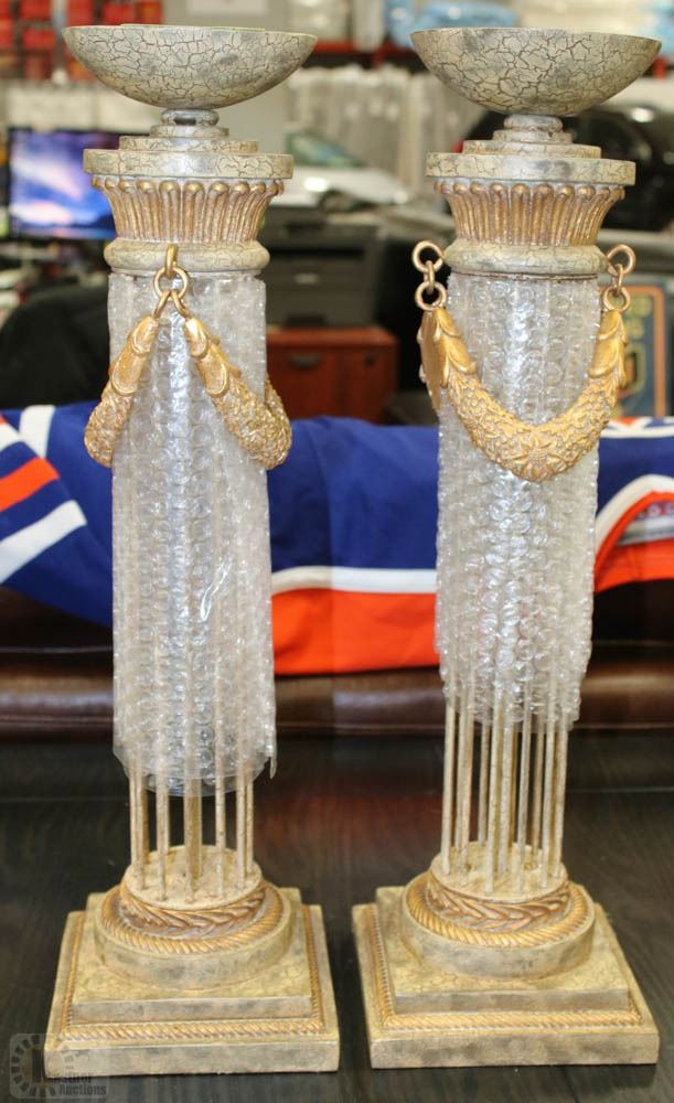 PAIR OF CATHEDRAL STYLE PILLAR CANDLE HOLDERS