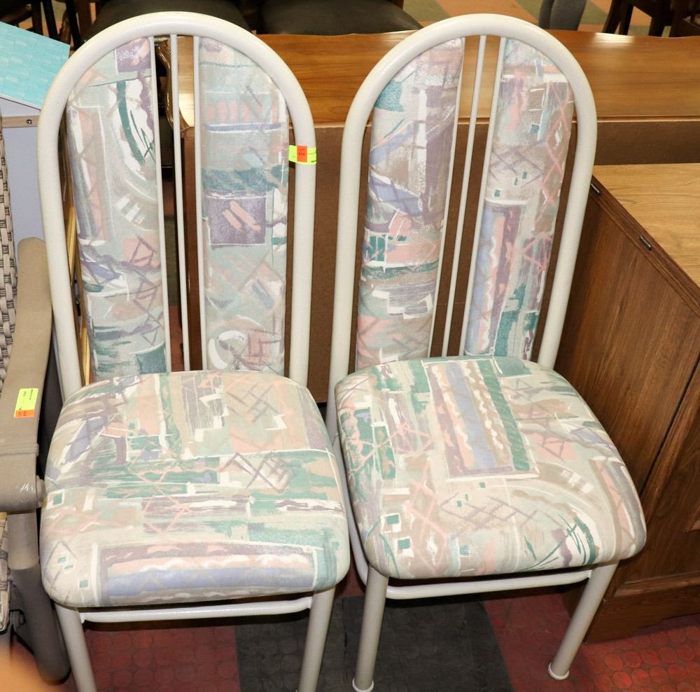 PAIR OF CLASSIC METAL AND FABRIC SIDE CHAIRS.