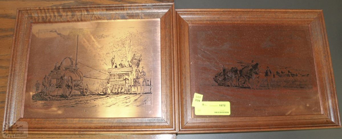 PAIR OF COPPER WOOD FRAMED WESTERN PICTURES