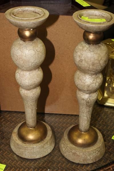 PAIR OF CRACKLE FINISH CANDLE HOLDERS