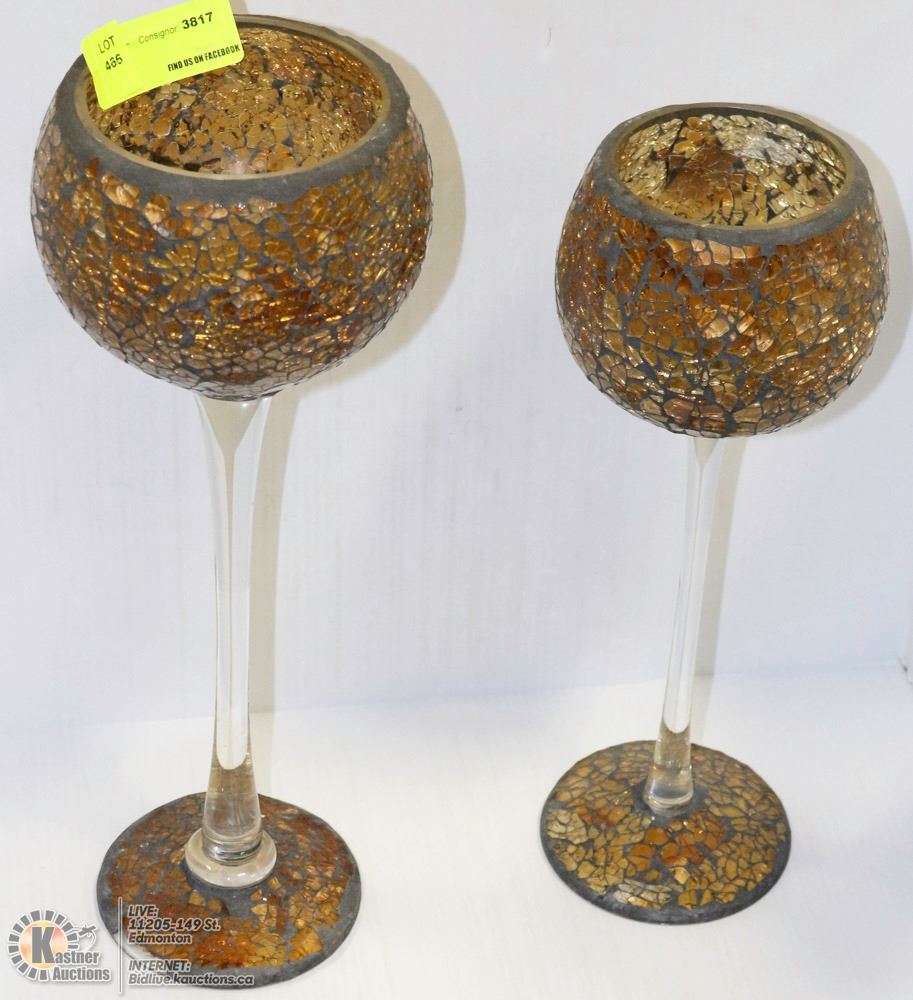 PAIR OF DECORATIVE CRACKLE GLASS CANDLESTICKS