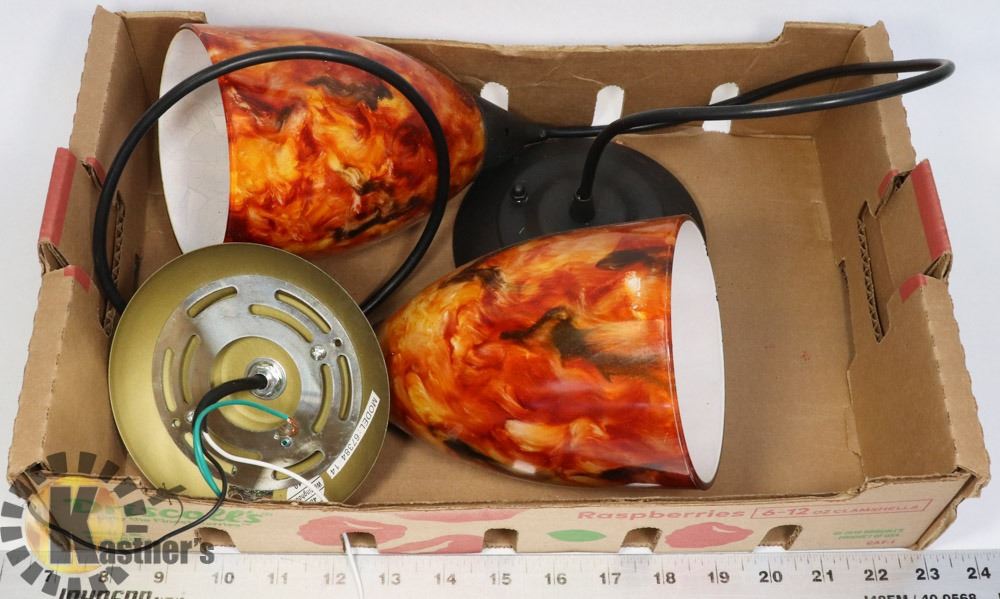 PAIR OF DECORATIVE GLASS PENDANT LIGHTS