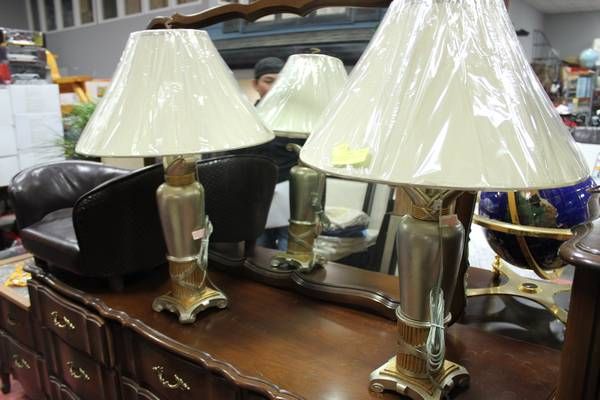 PAIR OF DESIGNER LAMPS SILVER & GOLD LEAF FINISH
