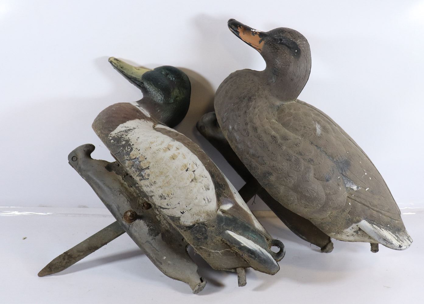 PAIR OF DUCK DEOYS WITH GROUND STAKES