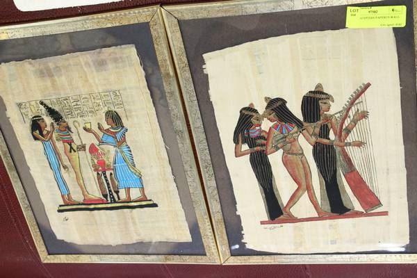 PAIR OF EGYPTIAN PAPYRUS WALL ART