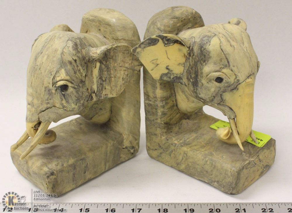 PAIR OF ELEPHANT BONE BOOK ENDS