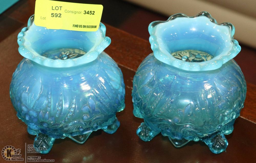 PAIR OF ESTATE BLUE ART GLASS VASES