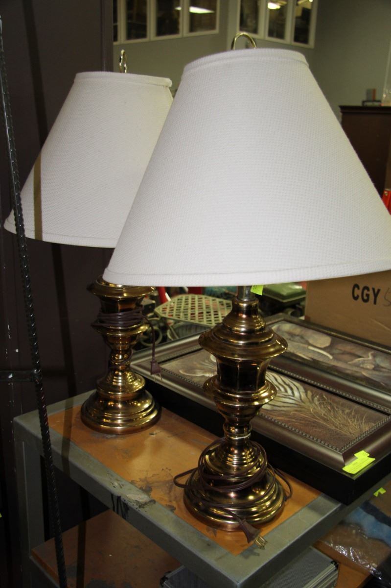 PAIR OF ESTATE BRASS TONE LAMPS