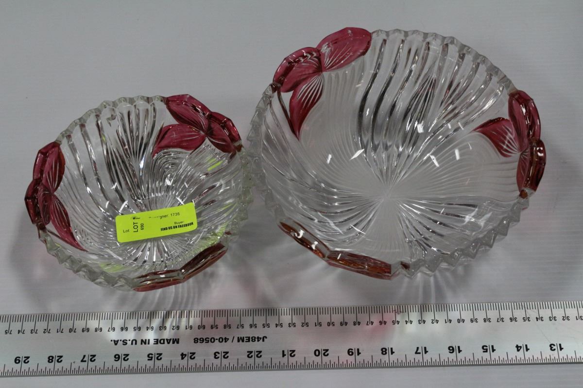 PAIR OF ESTATE CLEAR AND PINK GLASS FLOWER BOWLS