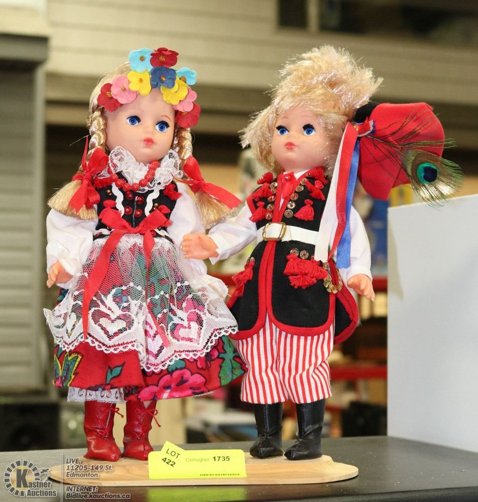 PAIR OF ESTATE COLLECTOR DOLLS ON STAND