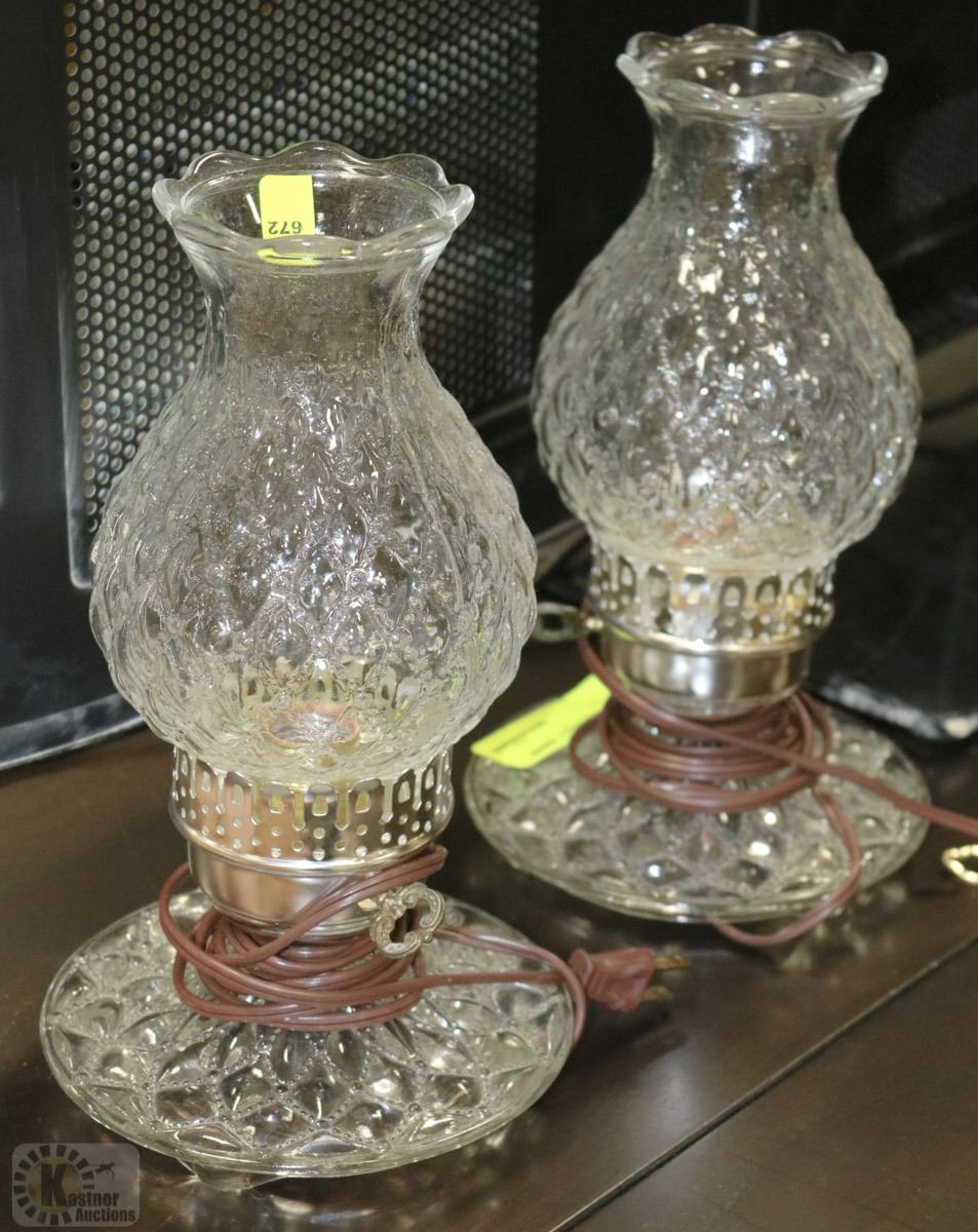 PAIR OF ESTATE CUT GLASS ELECTRIC HURRICANE LAMPS