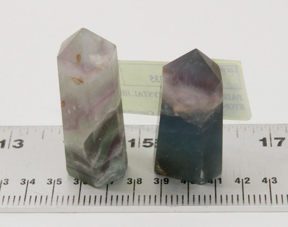 PAIR OF FLORITE CRYSTAL HEALING STONES.