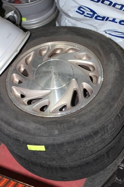 PAIR OF FORD ALUMINUM RIMS WITH USED TIRES