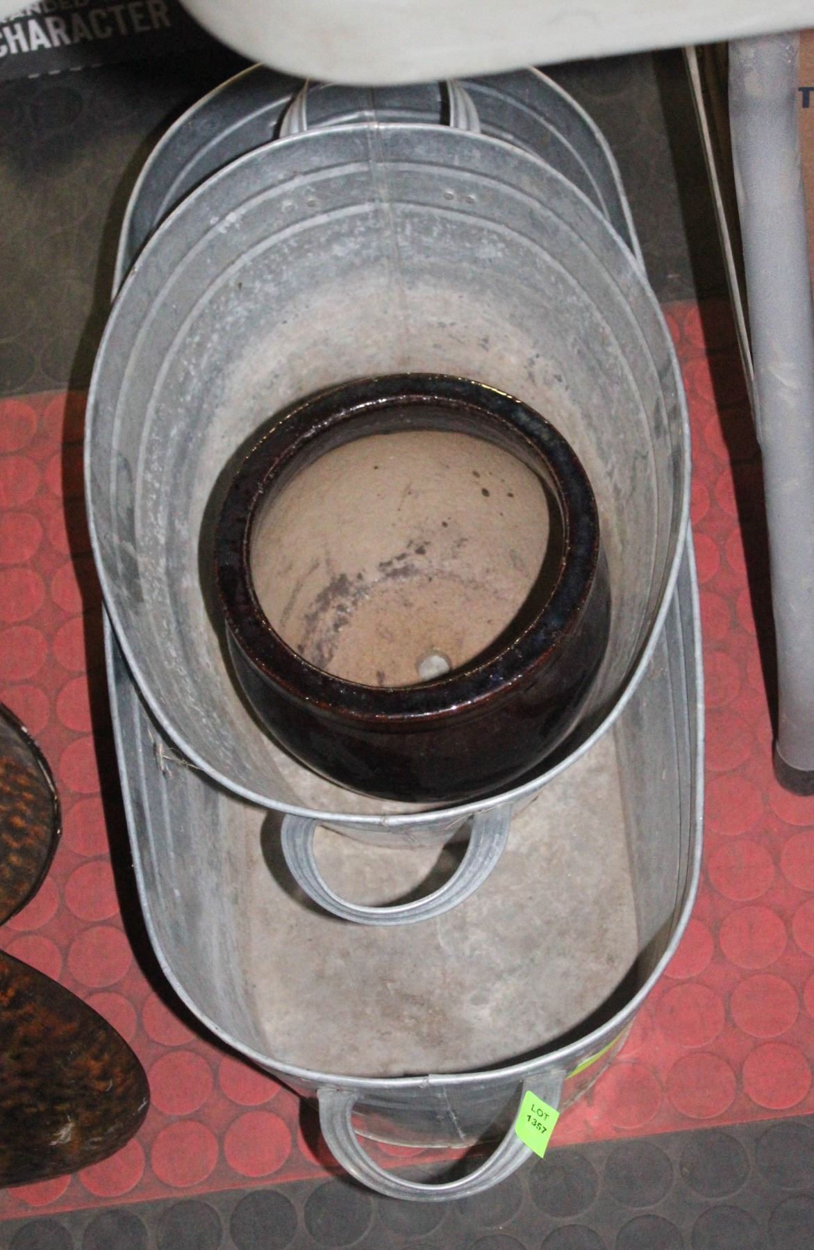 PAIR OF GALVANIZED METAL PLANTERS