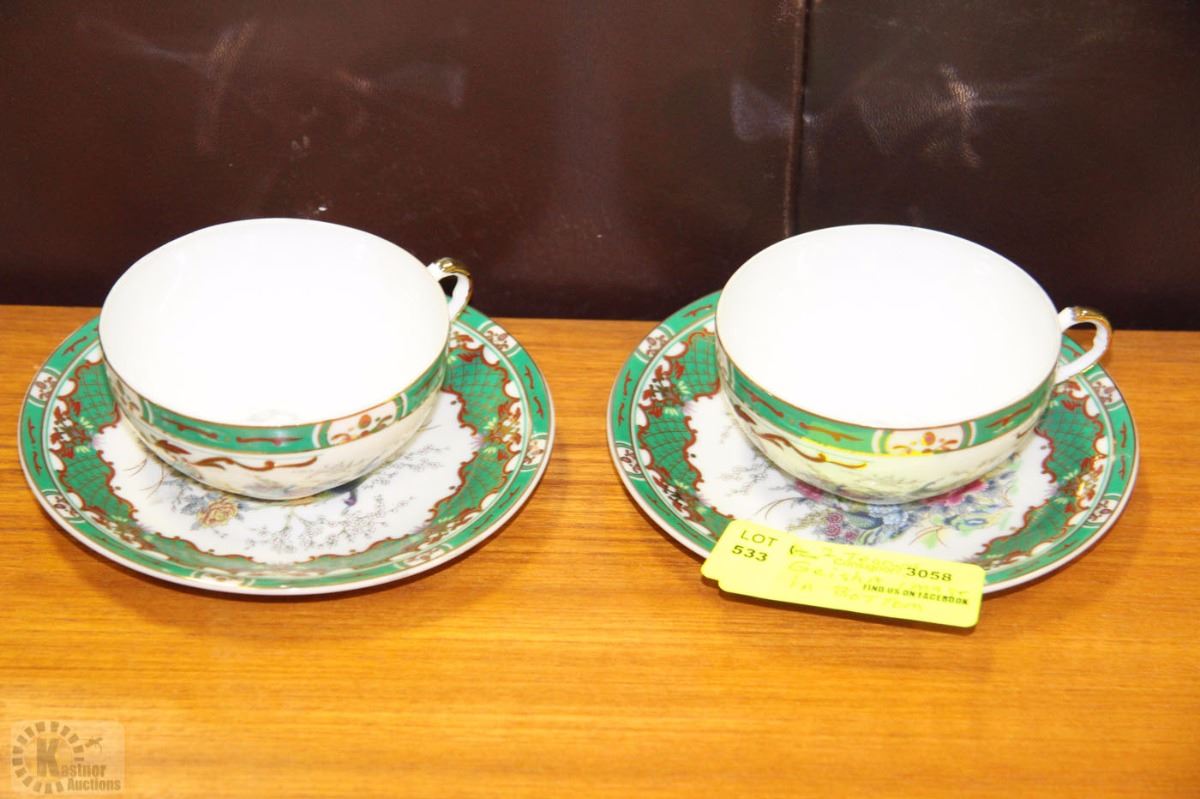 PAIR OF GEISHA IMAGE CUPS AND SAUCERS