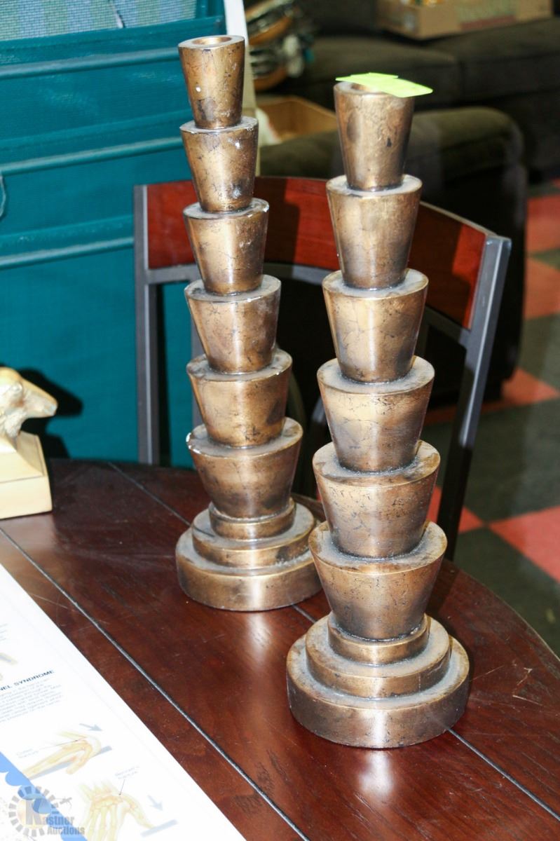 PAIR OF GOLD STACKING STYLE CANDLE HOLDERS