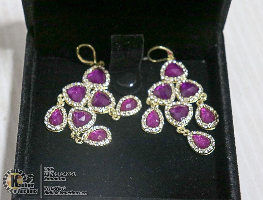 PAIR OF GOLD TONED EARRINGS WITH PURPLE RHINESTONE