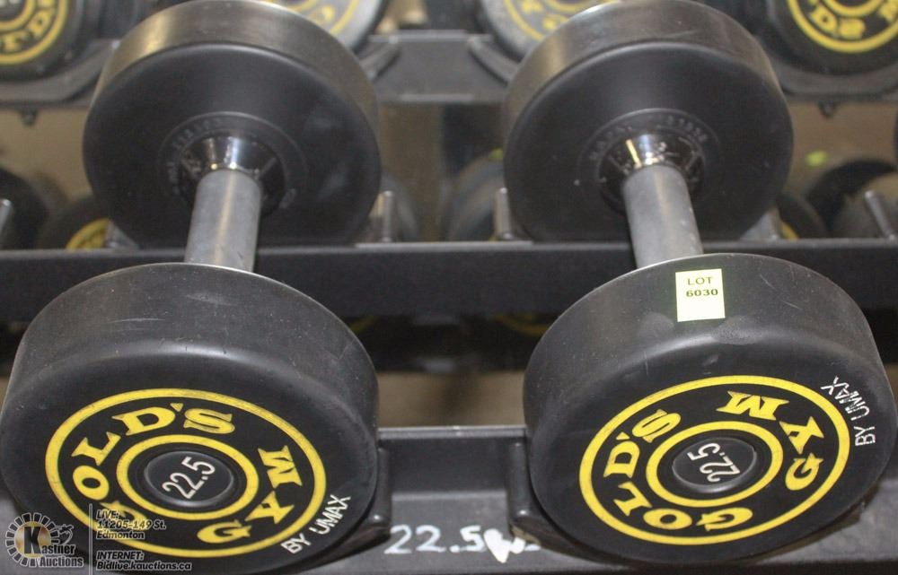 PAIR OF GOLDS GYM BRANDED DUMBBELLS - 22.5 LBS EA
