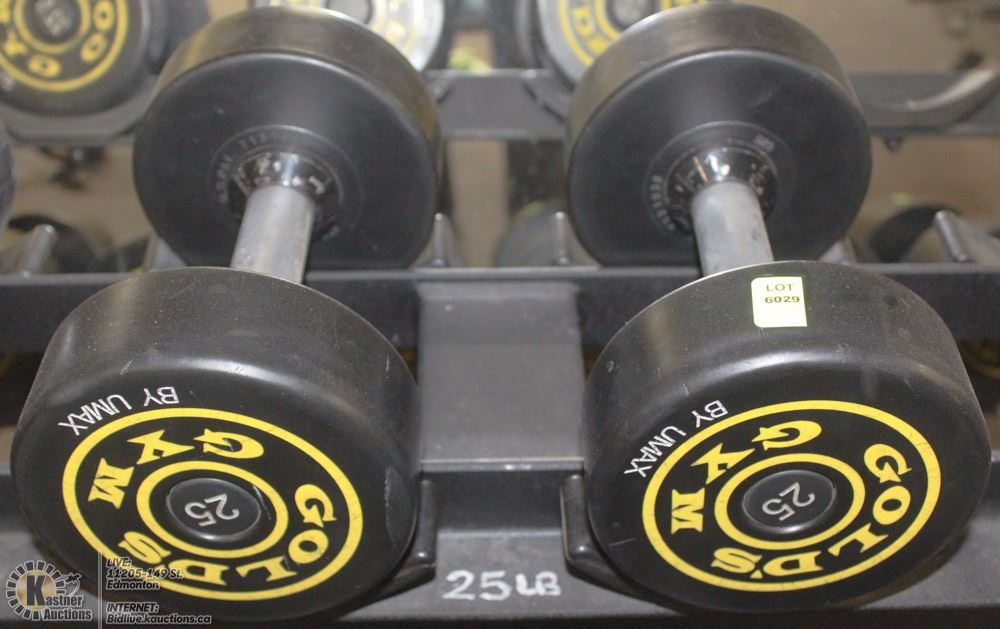 PAIR OF GOLDS GYM BRANDED DUMBBELLS - 25 LBS EA