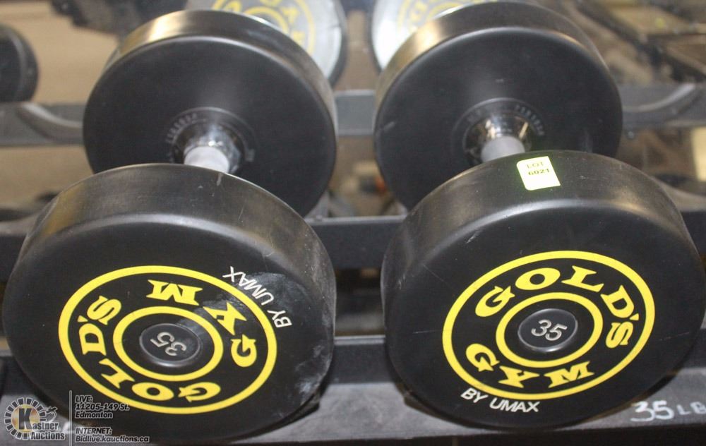 PAIR OF GOLDS GYM BRANDED BARBELLS - 35 LBS EA