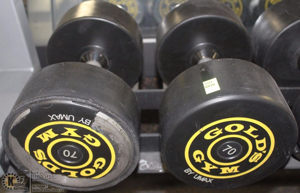 PAIR OF GOLDS GYM BRANDED DUMBBELLS - 70 LBS EA
