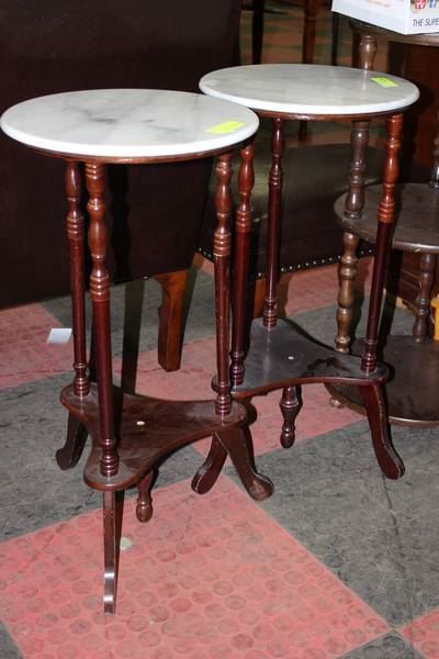 PAIR OF GRANITE TOP PLANT STANDS NEED WORK