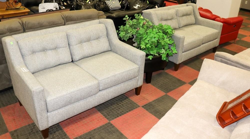 PAIR OF GREY FABRIC 56" LOVE SEATS