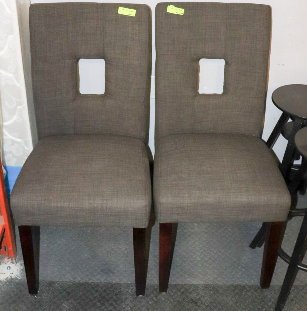 PAIR OF GREY SHOWHOME FABRIC SIDECHAIRS. FURNITURE