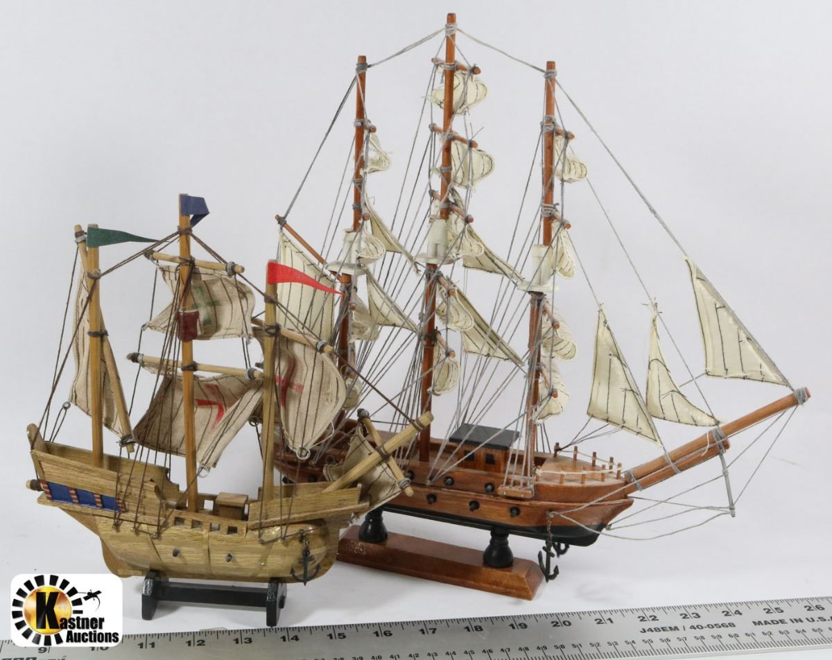 PAIR OF HANDMADE WOODEN SHIPS
