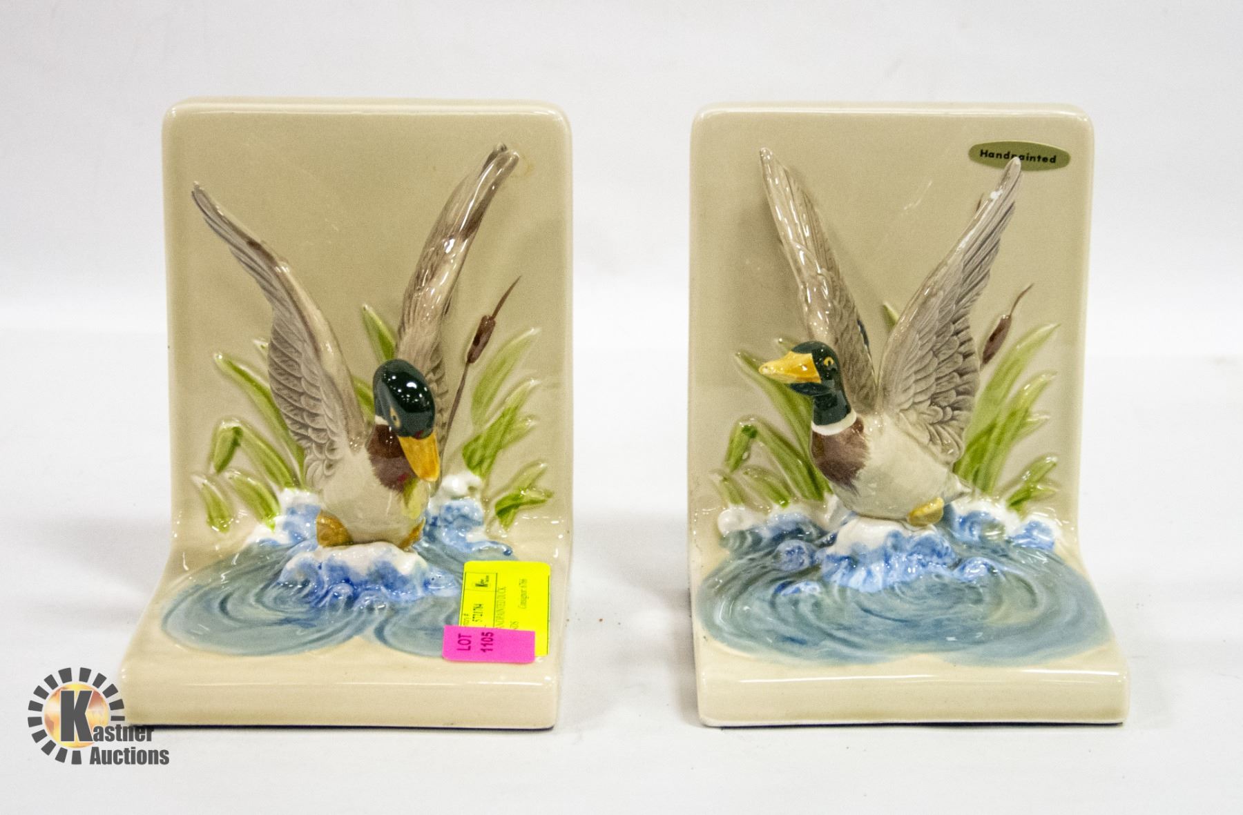 PAIR OF HANDPAINTED DUCK BOOKSTANDS