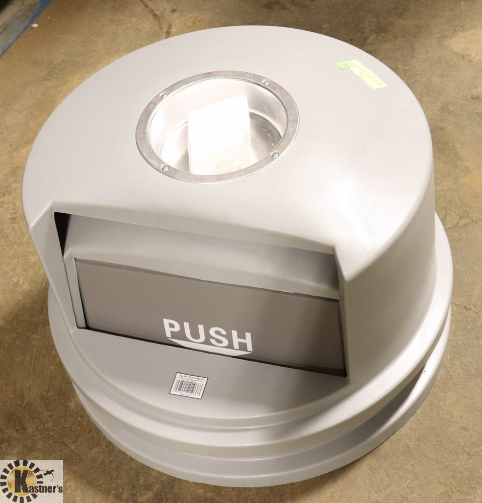 GARBAGE CAN LIDS WITH ASH TRAY TOP. AS THEY COME